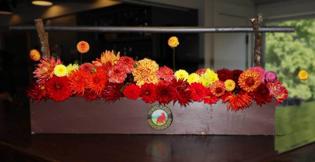 "Don’t get too close - you might get burned!” Highlands Smokehouse owners Bryan Lewis and Stephen Julka have been avidly gardening and growing their dahlia collection for several years. They are thrilled to be first-time dahlia festival participants this year.