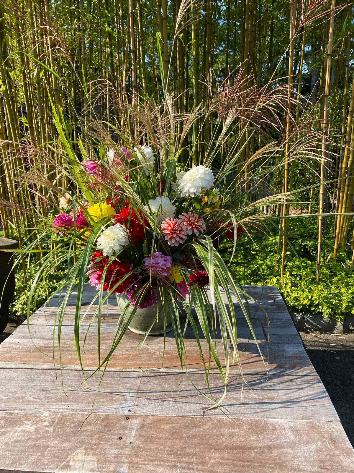 This arrangement is made of blooms grown and harvested at Glen Cove Farm, an integral part of the new OEI planned community, Glen Cove. Located between Highlands and Cashiers, Glen Cove is a place where members can cultivate a healthy lifestyle with family and friends; and focus on the natural beauty of the plateau.