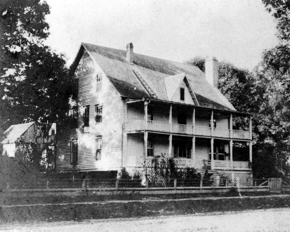 Photographer John Bundy took this photo of Central House in 1883. One of Highlands' first boarding houses, it was built n 1878 and is now on the National Register. Owner Joseph Halleck replaced the wire fence in front with a picket fence in 1884. The building was owned by John Norton before it passed to David Norton in 1888, Rev. W. T. Potts in 1905, the Edwards family in 1913, and has been Madison's Restaurant of Old Edwards Inn and Spa since 2004.