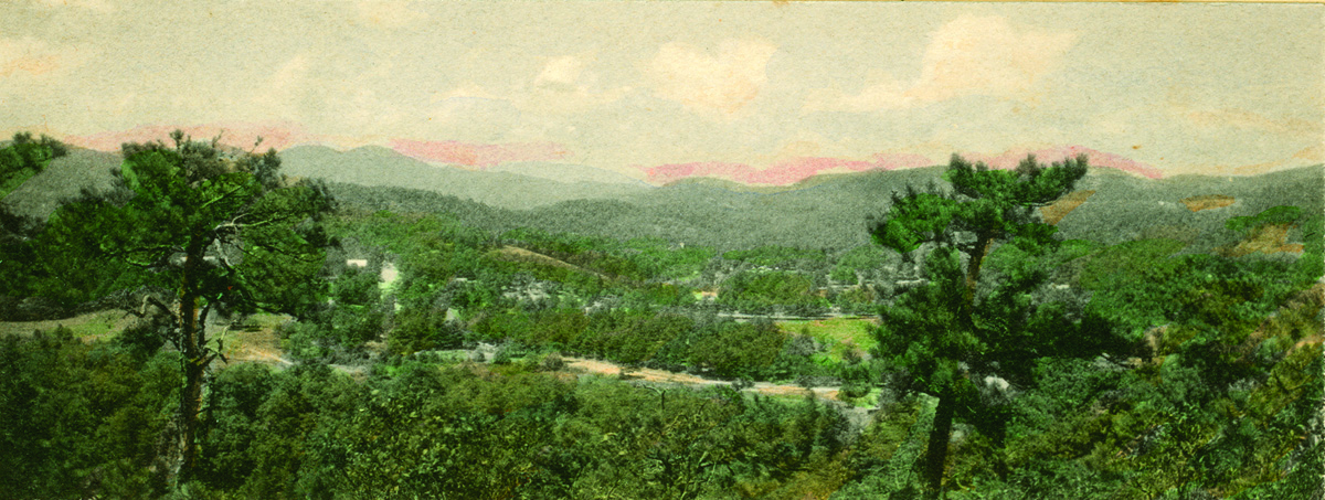 Photographer Henry Scadin hand-colored this scene of Highlands from Sunset Rocks ca. 1910. The photo was originally owned by Louise Bascom Barratt.