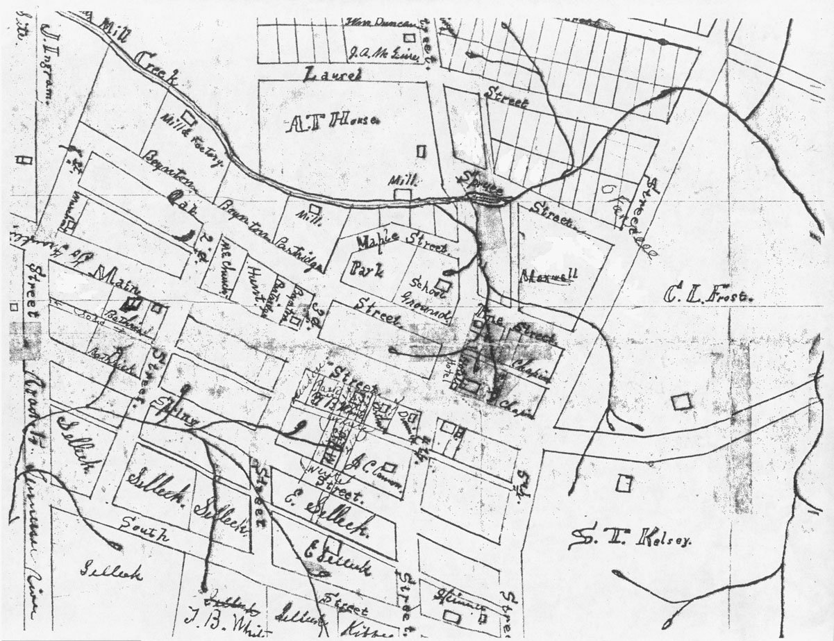 The map of 1881 that Kelsey drew of the town showed proposed streets and lots and homes that existed when the town was only six years old.