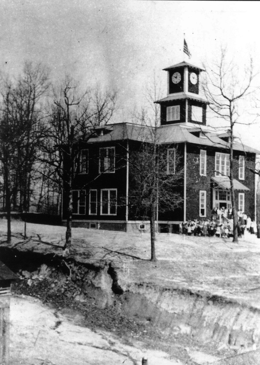 Photo of Emmons Industrial School in 1925. It replaced Shortoff School when it was built on the hill above in 1906, but it's gone today. Prof. Harbison wrote a personal account of the tragic lightning strike at Emmons Industrial School on Sunday, July 20, 1913.